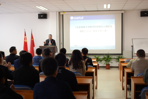 在船电楼组织全院教师学习《大连海事大学教学科研单位公用房管理暂行办法》(以下简称《公用房管理办法》),学院党委书记王心明主持会议。